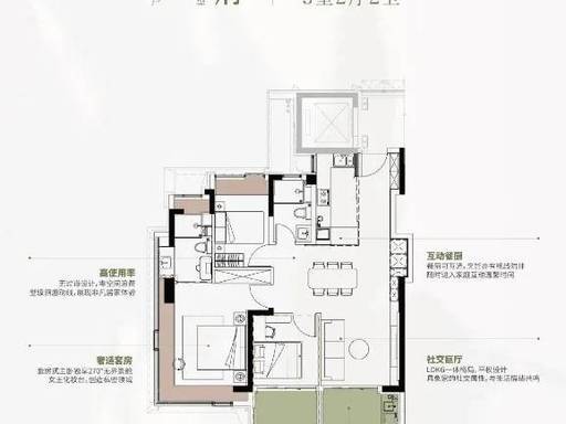 产品优质:户型方正、大面宽、LDKB 一体化、高附赠空间