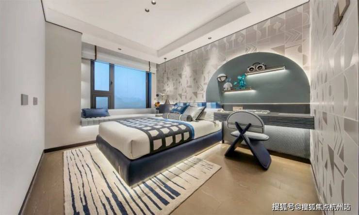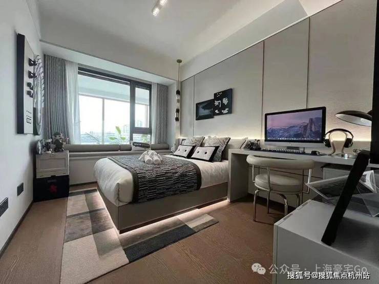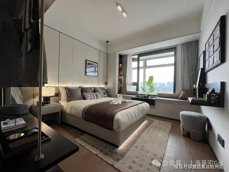 主卧套房设计,贯穿南北,自带卫生间和衣帽间,还有大面积飘窗,舒适度和私密性双爆表!