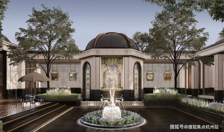 入口形象:超20米宽、10米高奢华门仪,采用高奢复古石材。