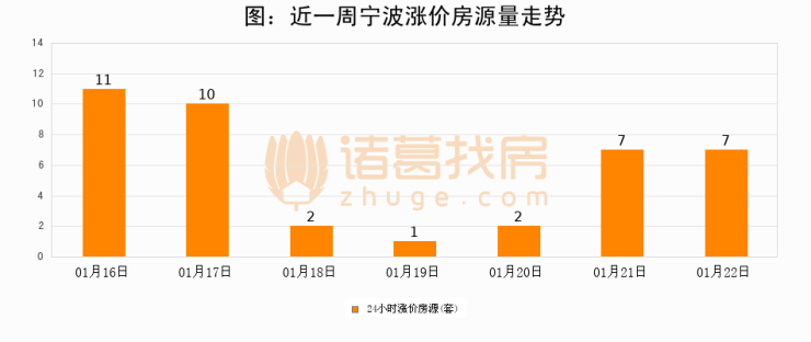 根据诸葛找房数据显示,宁波24小时涨价房源量为7套,较01月21日持平。