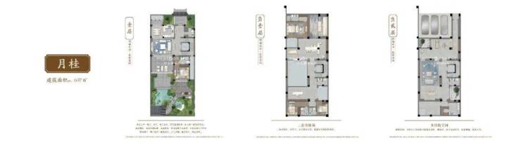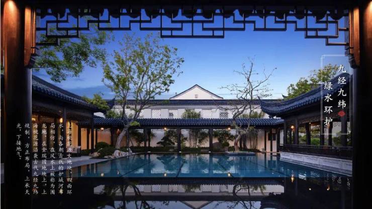 园内布局五进制南北主轴、以及“双龙戏水”格局的双水街,巷道联通,设七大景观组团,形成“一环、两轴、七境”布局。175席中式园宅,依巷分布南北,横平竖直,秩序井然。
