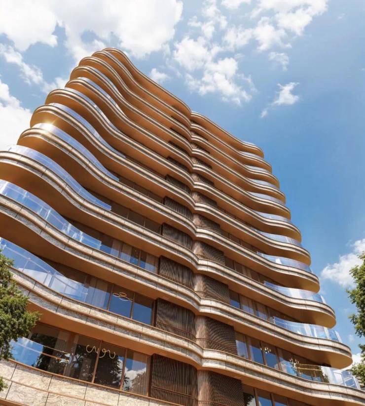 上面是陆家嘴太古源 源邸的立面,通过大量的曲线运用,进口浅色花岗岩衬底,搭配金属铝板勾边的流光色泽,使得建筑整体与咫尺黄浦江的波光粼粼遥相呼应。