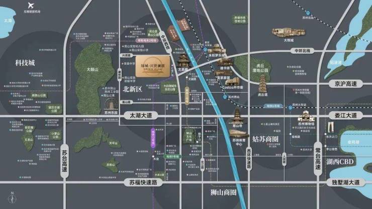 自驾:近中环西线、中环北线、太湖大道高架,兴贤路、通浒路主干道环伺,快速接入苏台、沪常高速