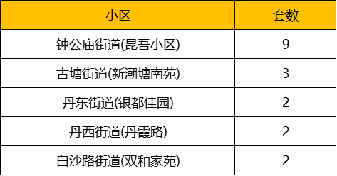 其中钟公庙街道(昆吾小区)成交9套,位列榜首。