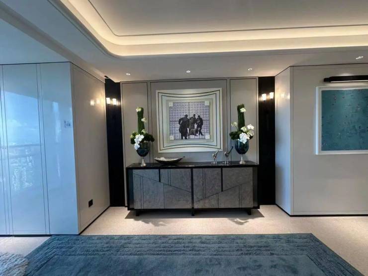 不同于市面上门是门,框是框,墙是墙,看房时“五颜六色”。外滩瑞府室内采用一体化设计语言,实现空间、色彩与材质的协调统一。比如