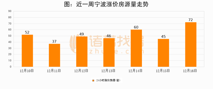 根据诸葛找房数据显示,宁波24小时涨价房源量为72套,较12月15日增加27套,环比上涨60%。与此同时,涨价房源占比小幅扩大,业主信心有所提升。