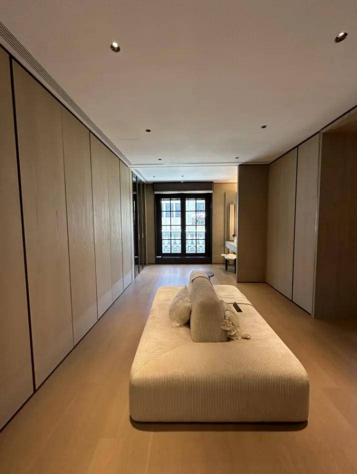 靠户型东侧,样板间设计了一个独立衣帽间和主卧套房的第二个卫浴空间。