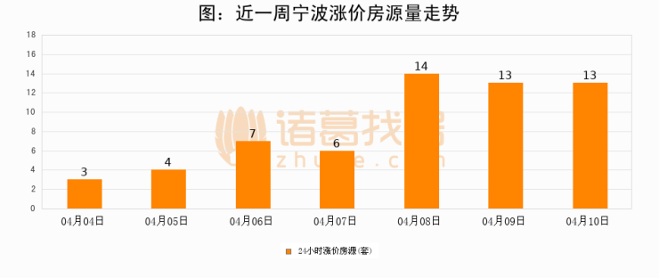根据诸葛找房数据显示,宁波24小时涨价房源量为13套,较04月09日持平。