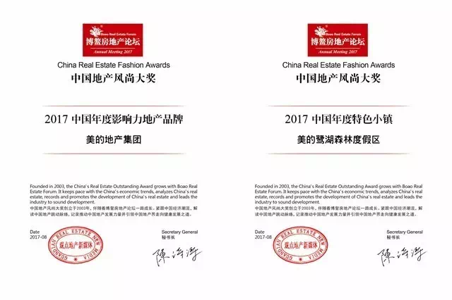 8月7日-8月10日,第17届博鳌房地产论坛在海南隆重举行,凭借稳健的发展,美的地产集团荣获“2017中国年度影响力地产品牌”。