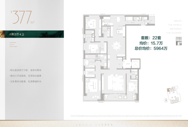 而建面约299-377-400㎡同样有出色占位,中低区无遮挡,视野采光俱佳。
