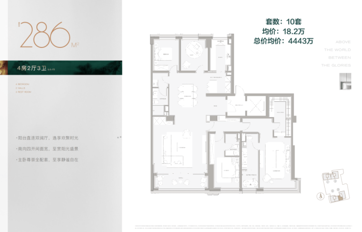 286㎡,4房3卫,单价18.2万