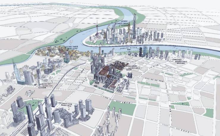 与此同时,蓝绿丝带的概念也逐步深入加强。为了将历史与现代、文化与商业完美融合,政府打造了一条贯穿新天地-露香园-豫园-十六铺码头的城市绿带,将城市历史与自然肌理打造成一个有机整体。