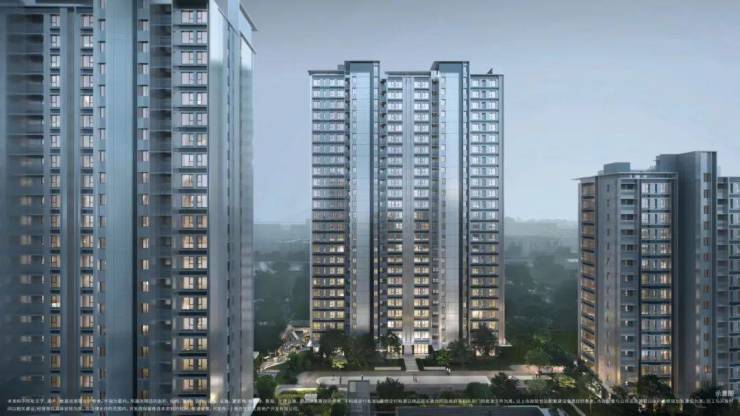 在立面色调上,以中灰色和深灰色为主旋律,采用大面玻璃结合简洁的直线条,竖向线条突出立体感,让视觉上更具挺拔力量感;大面积无框开敞阳台玻璃的设计,搭配香槟色金属边框,在阳光下,白色温润质感和香槟金色光泽交相辉映,塑造轻盈而精致的高端现代住宅形象。