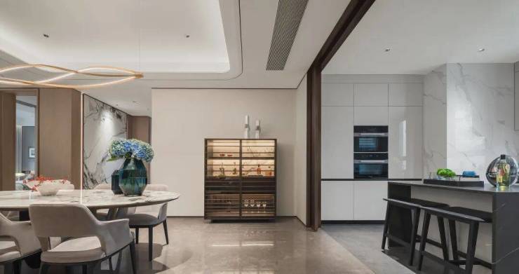 弧形元素 缦云上海样板间里随处可见柔和的圆弧修饰,特别是柜体、墙体包边的圆弧转角,在进出各个空间时,减少磕碰的风险,对于有孩子和老人的家庭来说,是非常实用的友好设计。