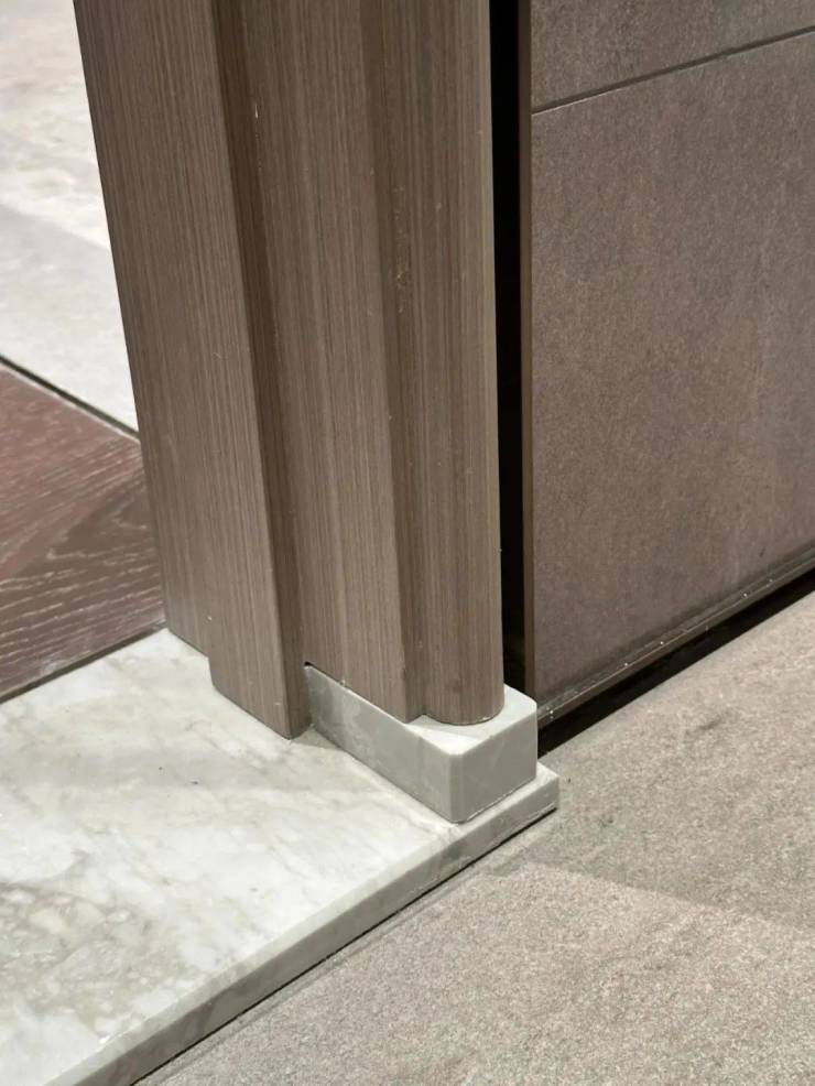 你们可以看下缦云上海是如何处理卫生间木门的防潮的——卫生间一侧用大理石做踢脚线,这是真正细致入微的巧思!