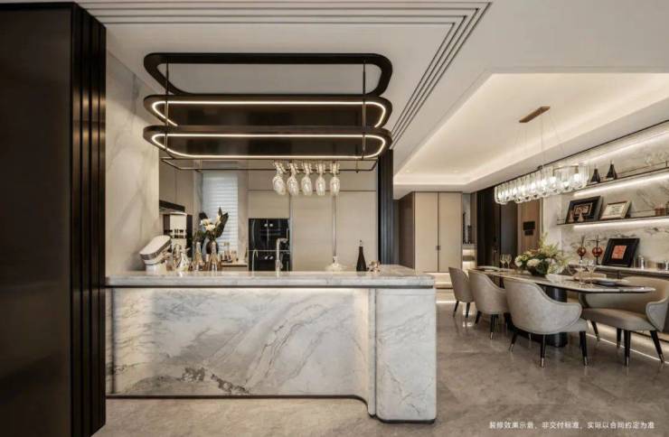 为一块奢石弧形工艺,投入翻倍的成本!整屋坚持用一种昂贵的木饰面贯通始终,从而实现整体艺术风格的统一!