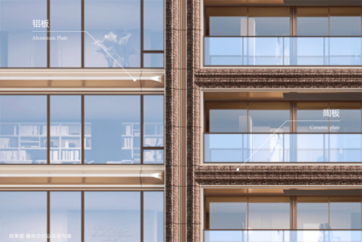 建筑四面均采用铝板+玻璃+定制陶艺