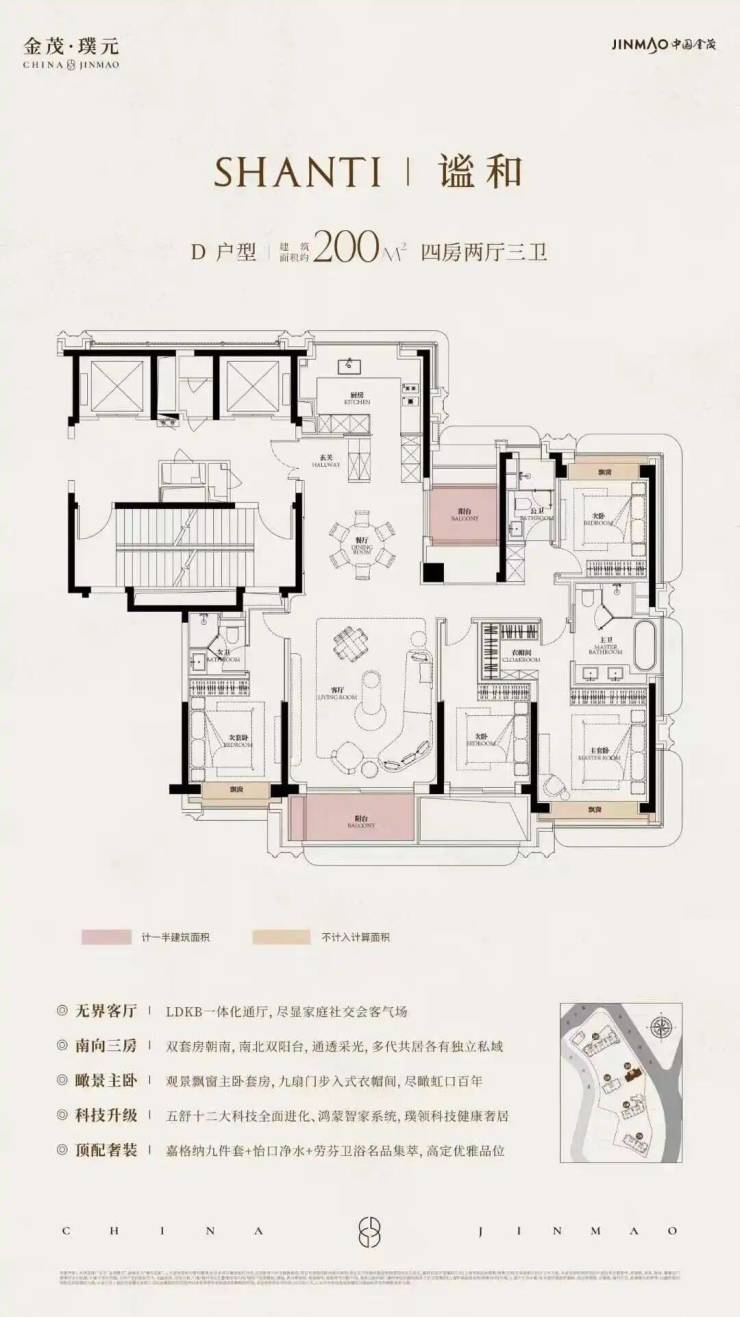 在金茂独有的12大科技住宅系统之上,璞元进行了全面升级优化,集金茂31年科技系统之大成,打造“舒温、舒湿、舒氧、舒音、舒净”全面进化升维的五舒科技系统,堪称金茂顶峯科技力作!