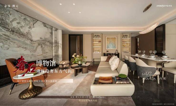 客厅背景墙的“烟雨江南”天然大理石,不同于传统平面背景墙,通过弧度及立体的造型处理,并镶嵌不锈钢材质!对于金茂而言,比奢石昂贵的,是让奢石真正与空间气场融为一体!