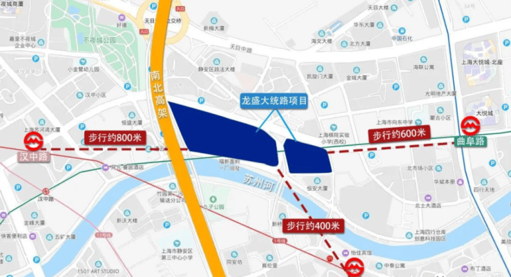 交通方面,1号线新闸路站仅约400米;距离8、12号线曲阜路站约600米;距离1、12、13号线汉中路站约800米。自驾可通过南北高架,畅达全城。