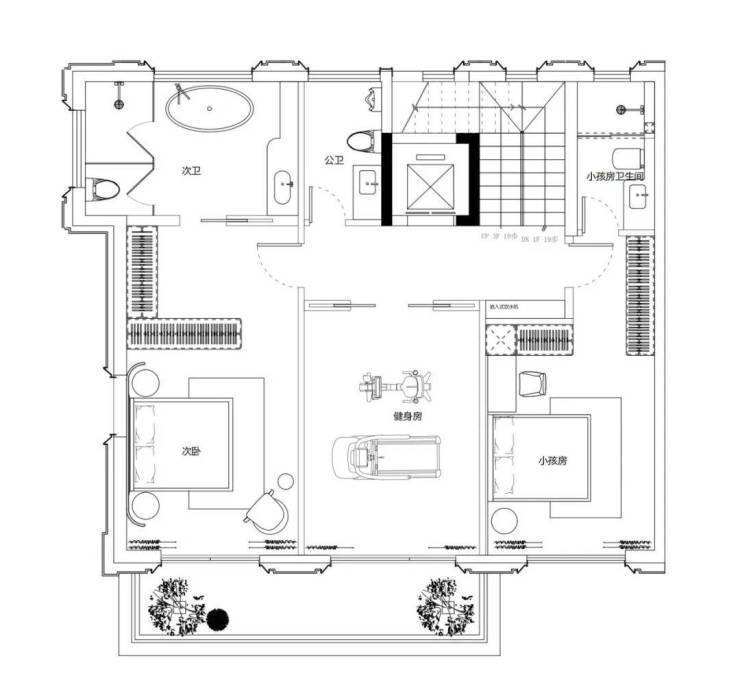 楼梯底部嵌入一方水景,几株绿植静立其中,水波与光影共舞,瞬间柔化了空间的硬朗。