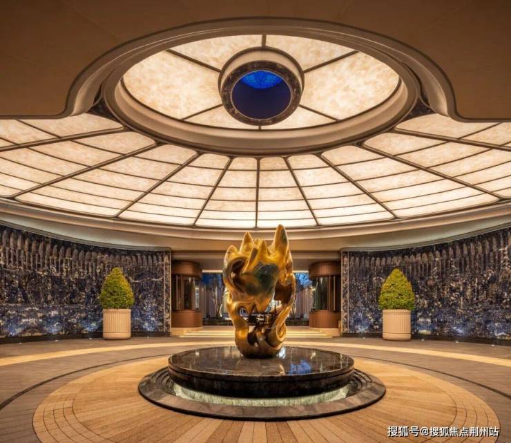 入口处矗立着国家级非遗传承人朱炳仁大师创作的《铸境湖山》 ,作品以独创的“熔铜技法”,将西湖山水、三潭印月与建筑线条熔铸一体,成为可触摸的杭州记忆;中轴园景里,也有一个朱炳仁大师的作品,在未来的生活中,成就岁月之美。