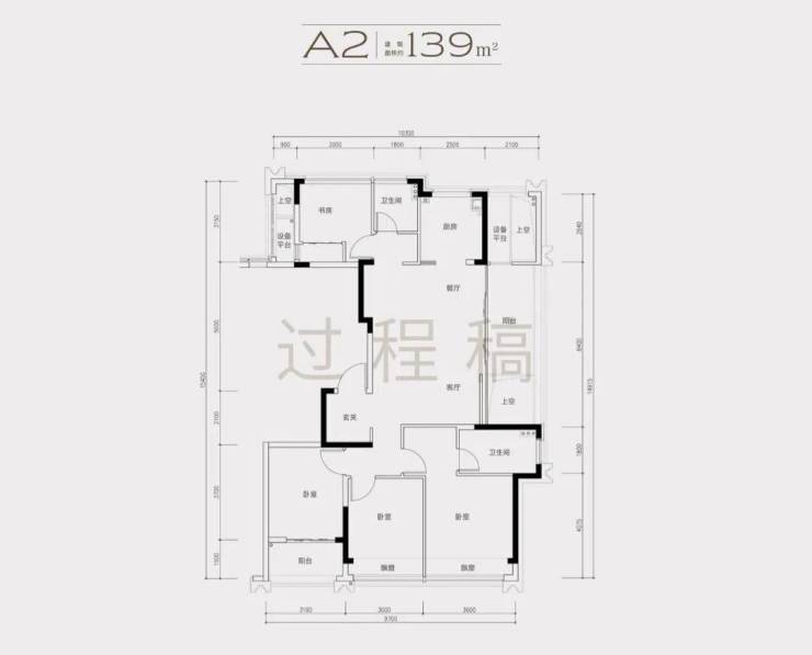 1)139方边套户型,4房2厅2卫,得房率87%
