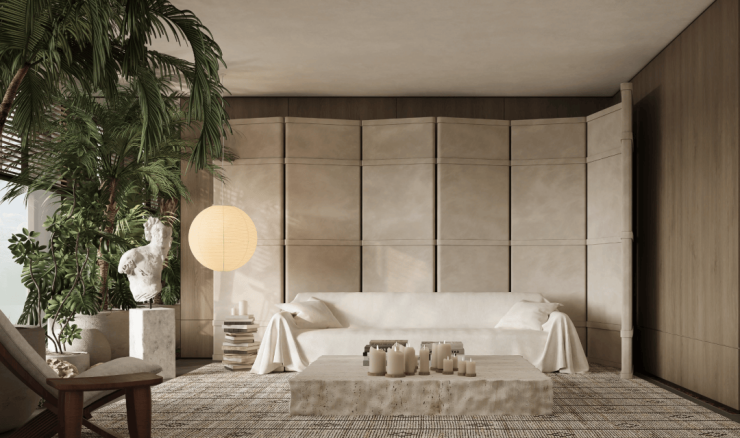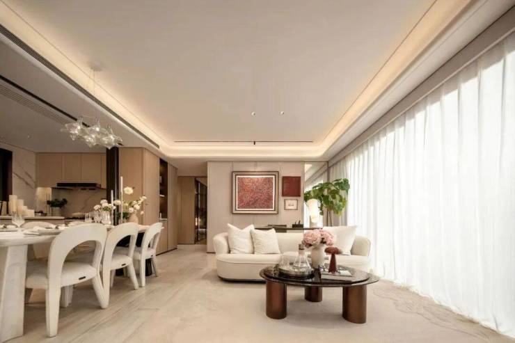 会所环绕着中心水苑展开,泳池、健身、瑜伽、私宴与茶室都被包裹在其中;连地下空间也被赋予自然的渗透,约30米面景的中央车站大厅,将光与绿意引入地库,让归家像步入一座埋入自然的殿堂。