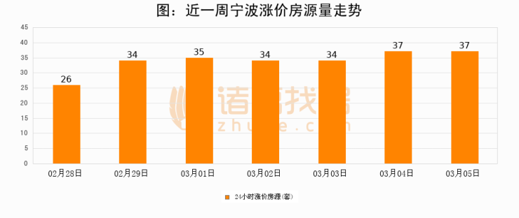 根据诸葛找房数据显示,宁波24小时涨价房源量为37套,较03月04日持平。
