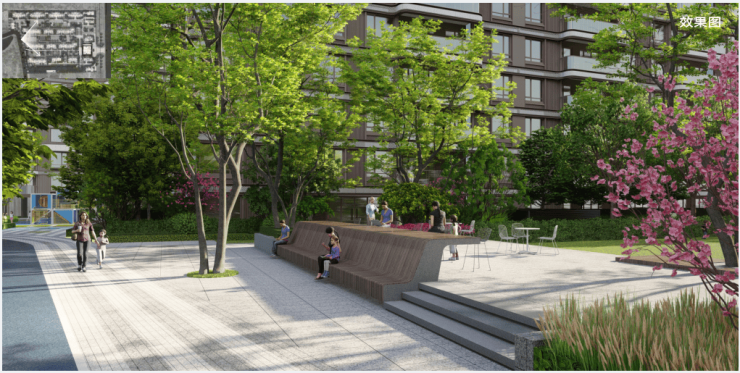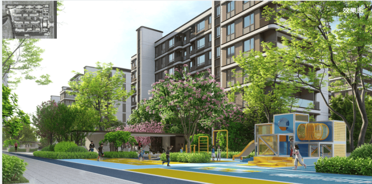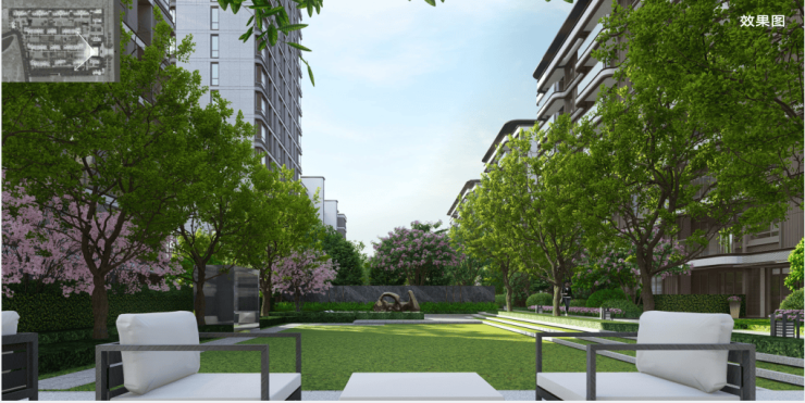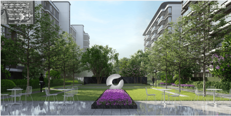 292、效果图:一种表现建筑外立面、小区景观等的平面图片。