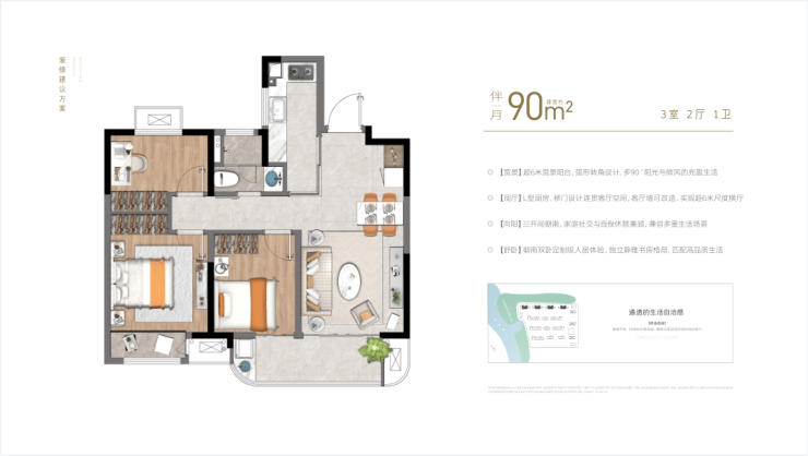 品质精装:全屋精装交付,配新风系统、方太厨电、品牌卫浴、智能门锁