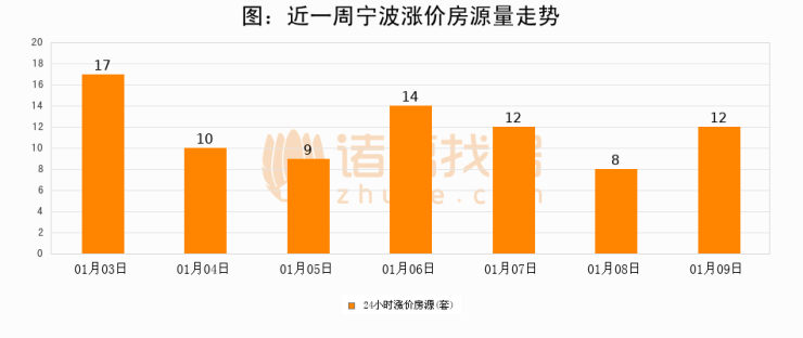 根据诸葛找房数据显示,宁波24小时涨价房源量为12套,较01月08日增加4套,环比上涨50%。与此同时,涨价房源占比小幅扩大,业主信心有所提升。