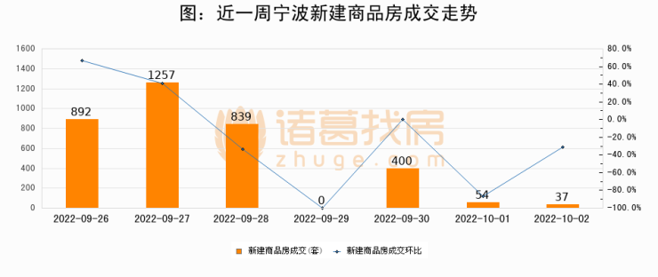 根据宁波市房产市场管理中心数据显示,2022年10月02日宁波新建商品房成交37套,较昨日减少17套,环比下降31.5%