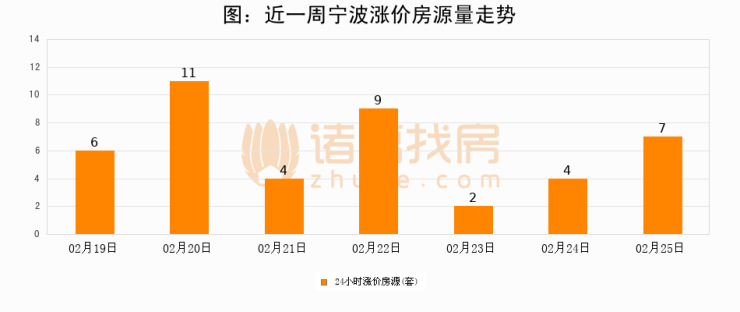 根据诸葛找房数据显示,宁波24小时涨价房源量为7套,较02月24日增加3套,环比上涨75%。与此同时,涨价房源占比小幅扩大,业主信心有所提升。