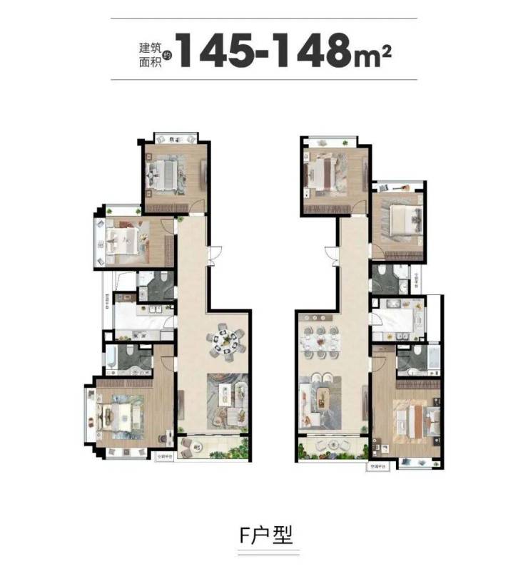 大尺度三房设计:在三房普遍紧凑的当下,仍坚持打造116–171㎡大三房,空间感强