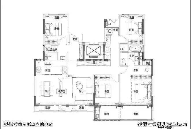 高层除140㎡户型为两梯两户以外,其余全部为两梯四户,中间套带连廊!