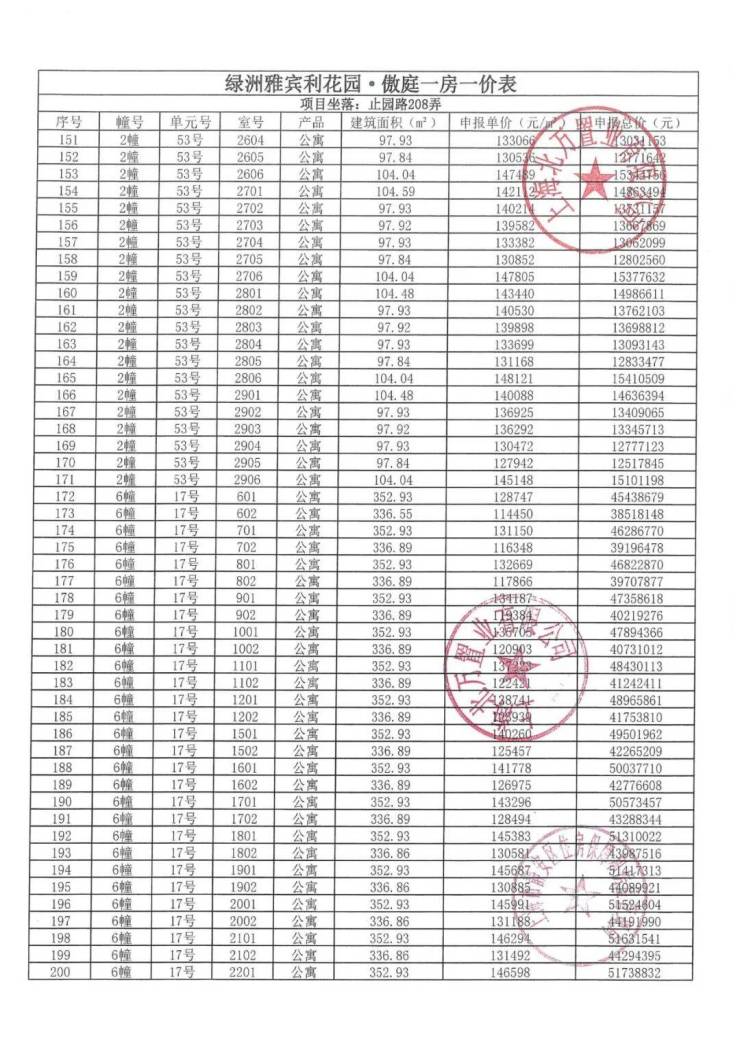 单价:过会均价13.58万/㎡,一房一价,部分批次均价13.5802万/㎡
