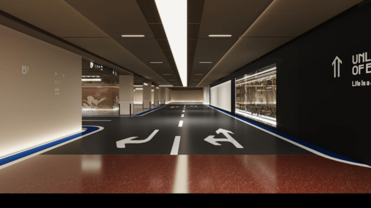 比如,艺术感与质感并存的地下车库。