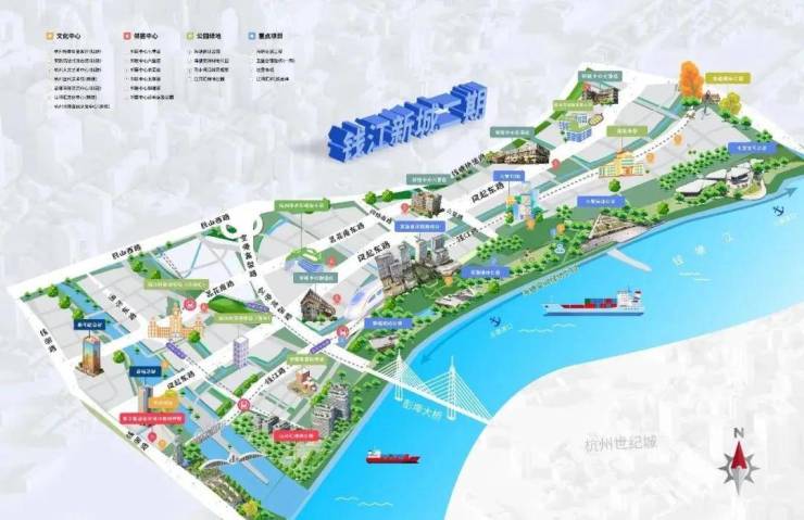 钱二有着拥江发展主战场、未来总部湾、滨水新潮岸、世界级滨水区等大头衔。