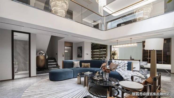 一楼层高约3.4米、面宽约7米大横厅霸气十足, 搭配大面落地窗,阳光清风肆意涌入,将室内映衬的一片明亮,毫无阴影死角。