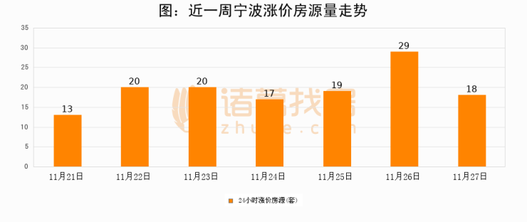 根据诸葛找房数据显示,宁波24小时涨价房源量为18套,较11月26日减少11套,环比下降37.9%。与此同时,涨价房源占比小幅回落,对于购房者来说是一个入市窗口期,购房者可抓住时机入市。