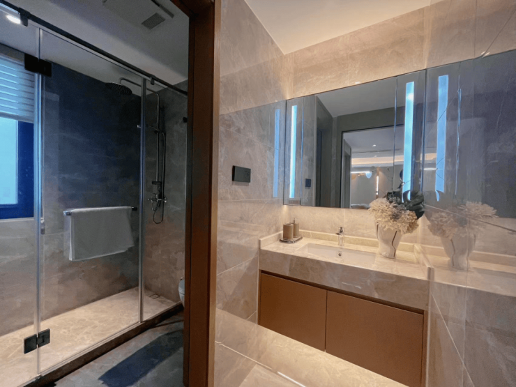 整个功能方面做到了四房两厅三卫,尺度与功能兼备非常舒适,而且南向的面宽达到了约6.7米。