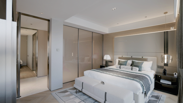 小区入口以“U型围合式空间”配合酒店式入户大门,打造五星级归家体验,门口设计了酒店式水景落客区,便利业主打车或临时停车的同时,也彰显了高品质精致生活。