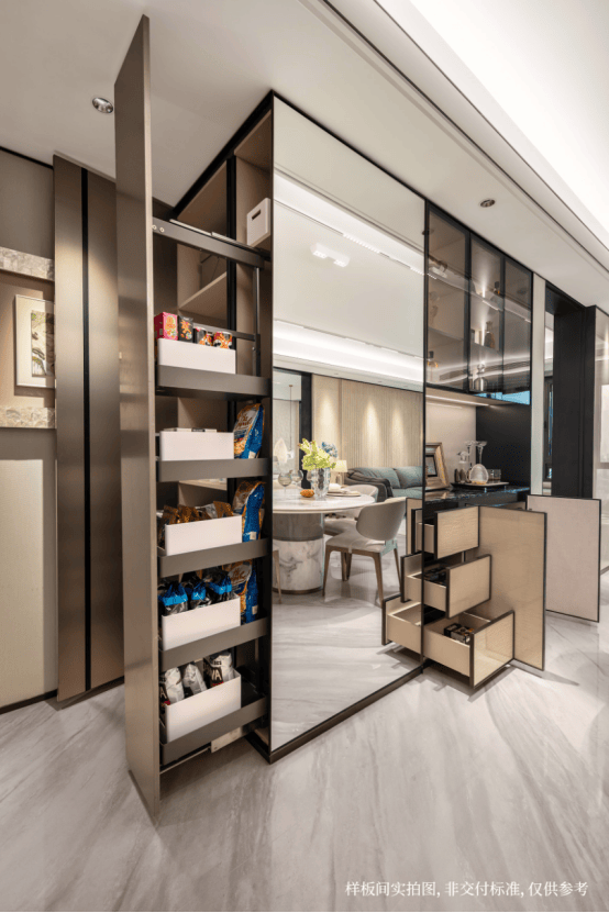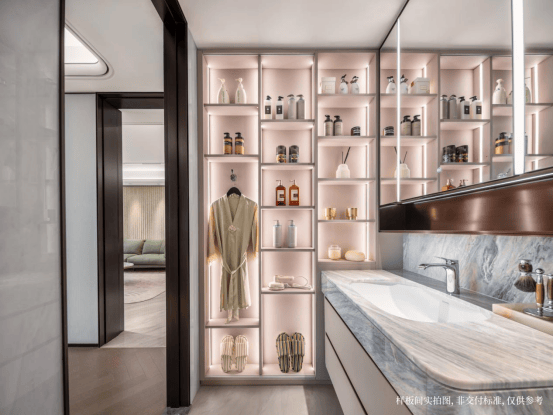 「玉兰门庭」摩登飘逸,环抱式落客前场,大师定制非遗掐丝珐琅门钹,流转温润光华,敬呈归家尊崇礼序,自此启幕生活的华贵序章。