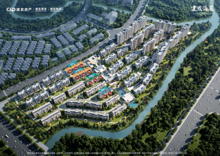 建发「宸系」中式作品,铝板与玻璃幕墙外立面,配园林景观。约1150套房源高低配,限高40米,含小高层、洋房、叠墅产品,满足刚需与改善需求。