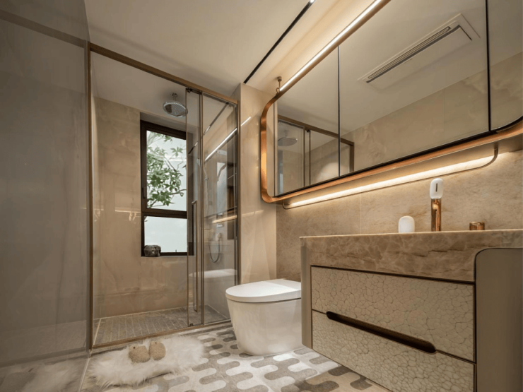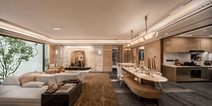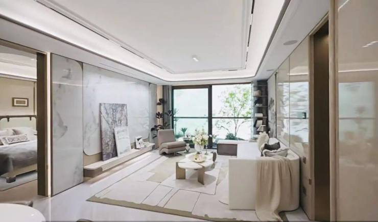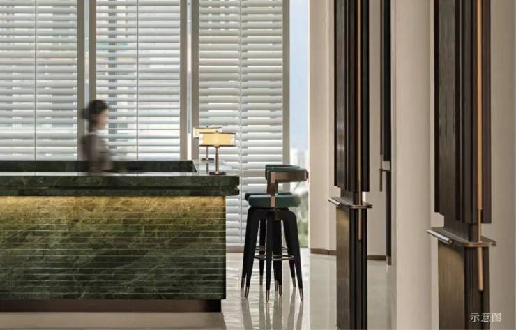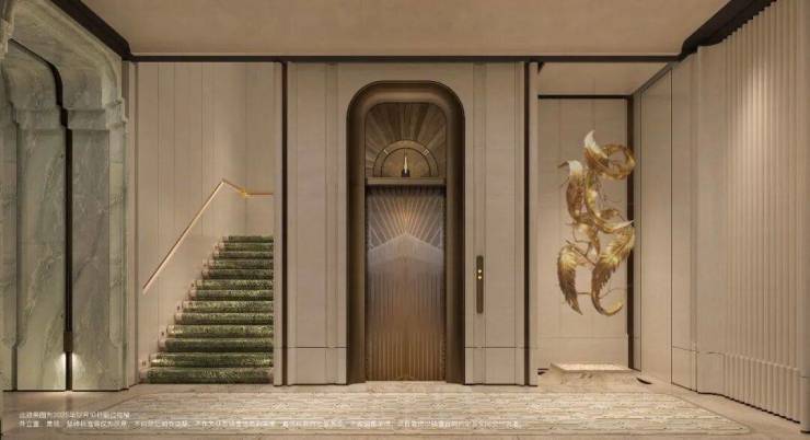 交付标准:精装修交付,玄关与背景墙采用芬迪白、万象山河、海蓝之谜等珍稀天然奢石,彰显高端格调