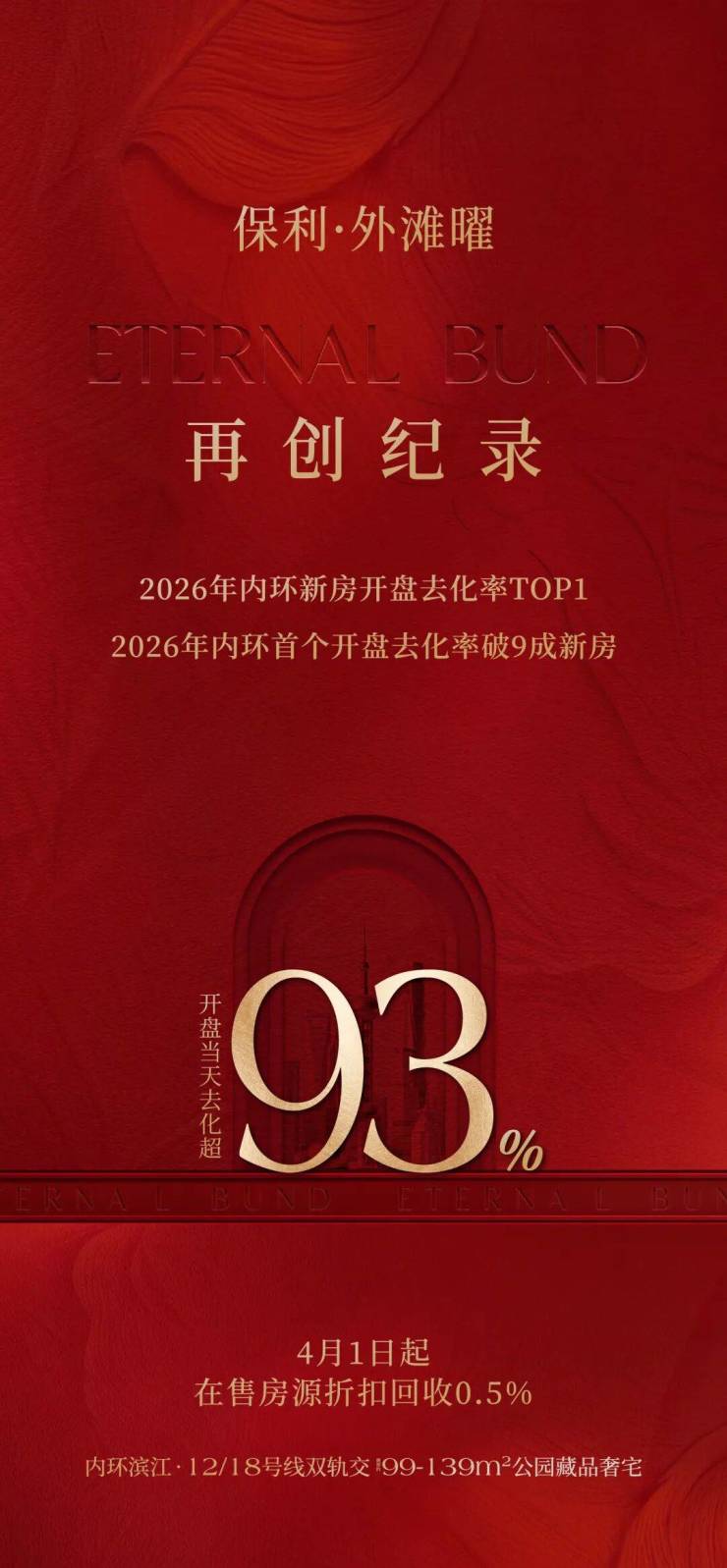 3月27日正式开盘,二批次去化超93%,成为内环首个开盘去化率破9成的新房,再创纪录,问鼎2026年内环新房开盘去化率TOP1,成为内环滨江红盘领跑者。据最新消息,项目4月1日以后在售房源优惠回收0.5%