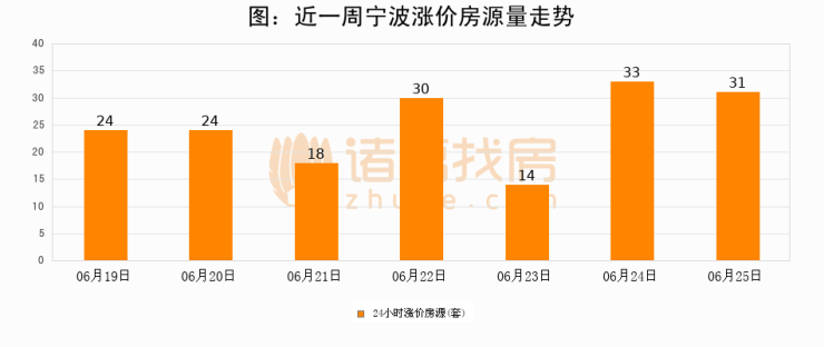 根据诸葛找房数据显示,宁波24小时涨价房源量为31套,较06月24日减少2套,环比下降6.1%。与此同时,涨价房源占比小幅回落,对于购房者来说是一个入市窗口期,购房者可抓住时机入市。