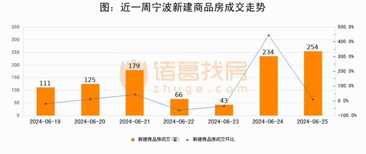 【宁波成交日报】06月25日新房成交254套;涨价房源31套