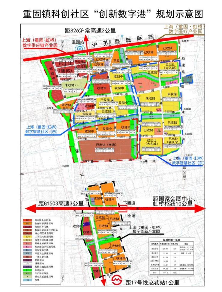直线距离在建示范区线赵重公路站约800米,通车后3站直达虹桥枢纽